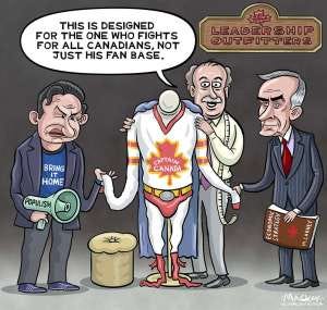 Yet again, featuring a superhero suit labelled “Captain Canada,” the Conservative leader held a megaphone marked “Populism,” while the Liberal leader clutched a folder titled “Economic Strategy.” I’ve drawn quite a few Captain Canada superhero costumes recently. This scene critiques Canada’s political landscape as it faces economic challenges worsened by Donald Trump’s trade policies. With Mark Carney now leading the Liberals, the upcoming election will reveal if Canadians favour collaborative leadership over populist rhetoric. I believe Carney is the right choice for Prime Minister, especially compared to Pierre Poilievre, whose far-right tactics echo Trump. We need a unifying leader to navigate these turbulent times and protect Canada’s sovereignty.