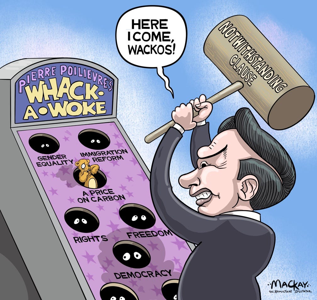In a rerun from almost a year ago, we critique Conservative Leader Pierre Poilievre's proposal to use the notwithstanding clause, which allows governments to override Charter-protected rights. The cartoon highlights risks to judicial independence and public trust, especially as Poilievre aims to bypass a Supreme Court ruling on life sentences without parole. Recently revisiting this idea raises fresh concerns, especially with parallels to Trump’s influence in the U.S. By signalling a willingness to sidestep court decisions, Poilievre risks losing support from voters who value judicial checks and balances. A more nuanced approach could help him respect judicial independence while advocating for his policies.